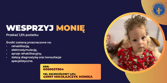 Przekaż 1,5% podatku i wesprzyj rozwój Moniki Mikołajczyk